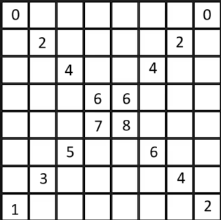 이제 $N$이 짝수인 경우 답이 $2N$인 격자를, 홀수인 경우 답이 $2N-1$인 격자를 구성할 수 있다면 그것이 최적해가 됩니다. 실제로 두 해를 모두 구성할 수 있으며, 그 예시 중 하나는 다음과 같습니다.
